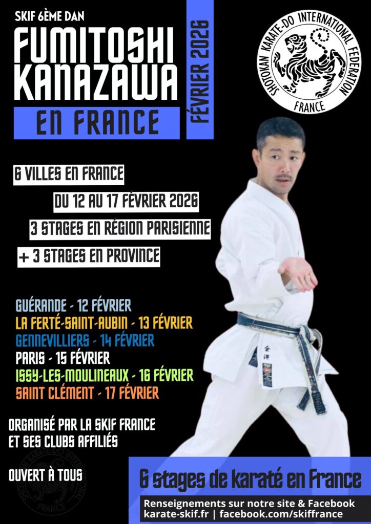 Stage avec KANAZAWA FUMITOSHI SENSEI 12 – 17 février 2026 Fumitoshi KANAZAWA Sensei 6ème dan SKIF Japon Karaté SKIF France a l’honneur d’accueillir pour la première fois en France Fumitoshi...